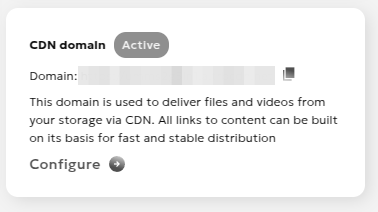By clicking "Configure", you will be taken to the CDN domain settings page.
