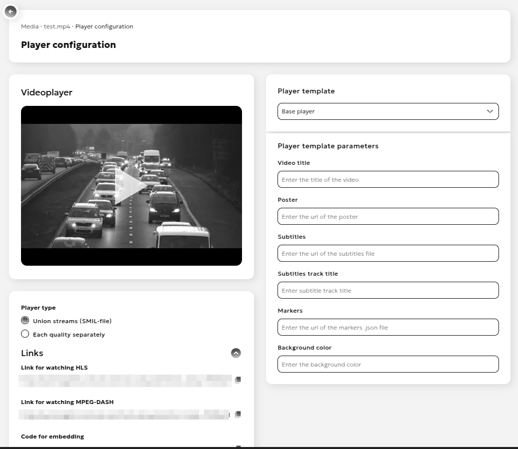 - Override the parameters of the selected player (title, poster, subtitles, markers, background color)