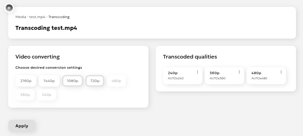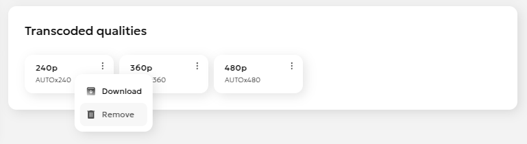 - After transcoding, the qualities will appear in the "Transcoded qualities" section